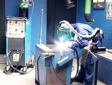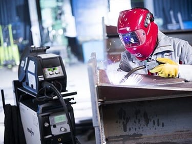 Equipo de soldadura MIG para fabricación y reparación de estructuras metálicas, que permite uniones resistentes y de buena presentación en acero al carbono, inoxidable y otros materiales.